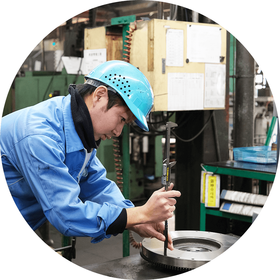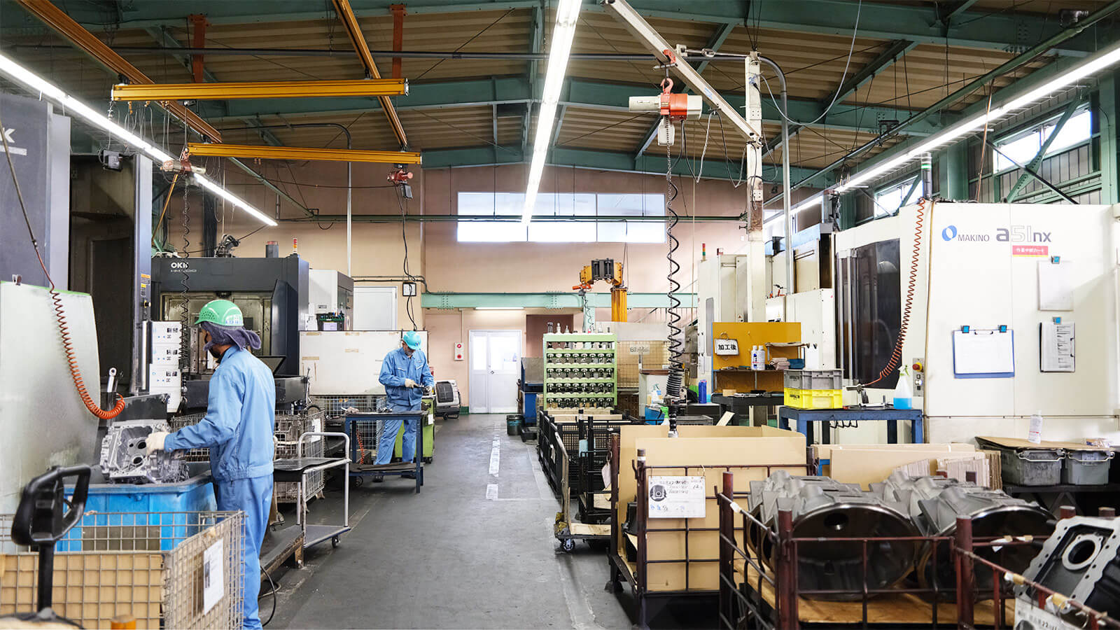 主にエンジン回りのHOUSHING FLY WHEEL等の平面研削、内面研削、円筒研削、精密洗浄、精密切削加工、機密圧着検査を行っています。
